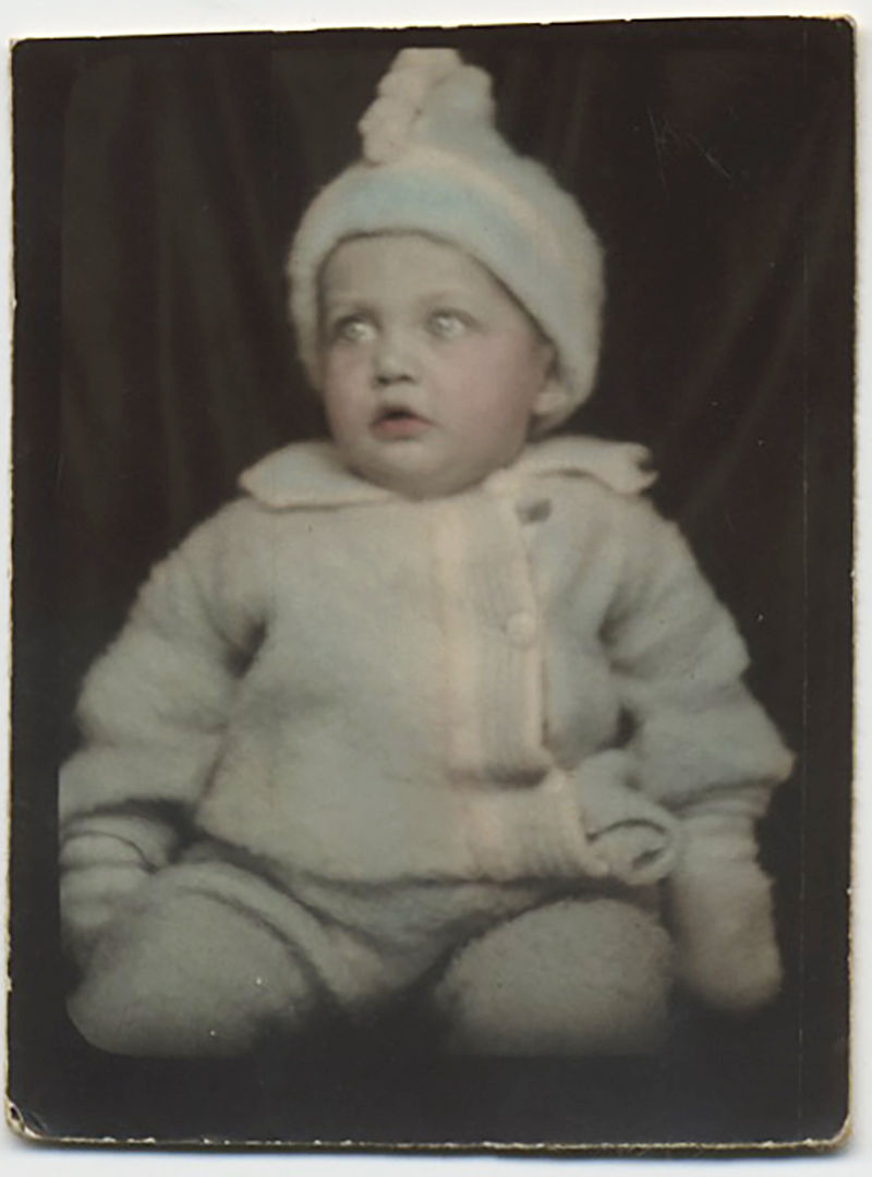 NICE HAND TINTED PHOTOBOOTH BABY in LOVELY KNITTED WOOLEN COLORED OUTFIT
